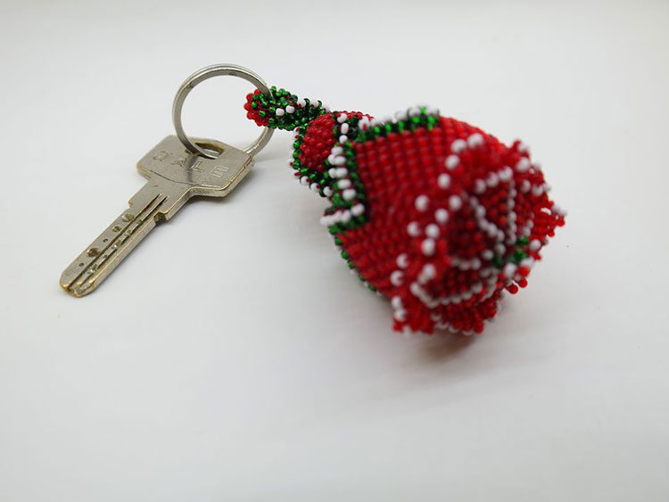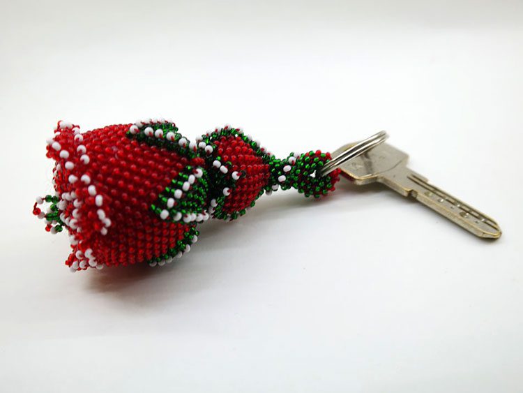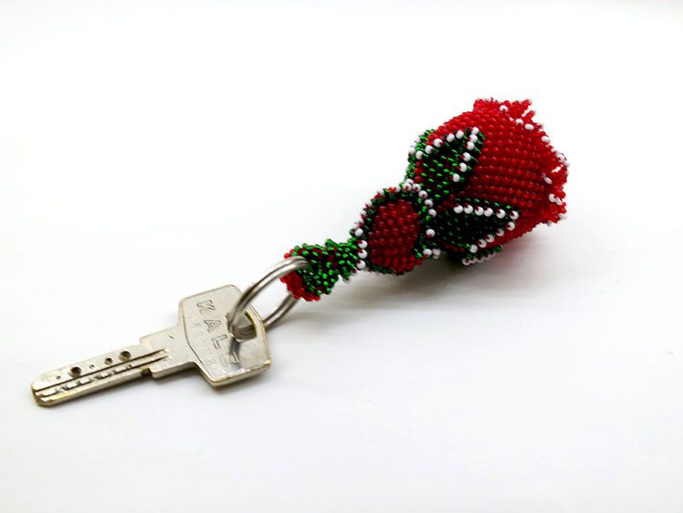 Cezaevi İşi Boncuklu Kırmızı Gül Anahtarlık