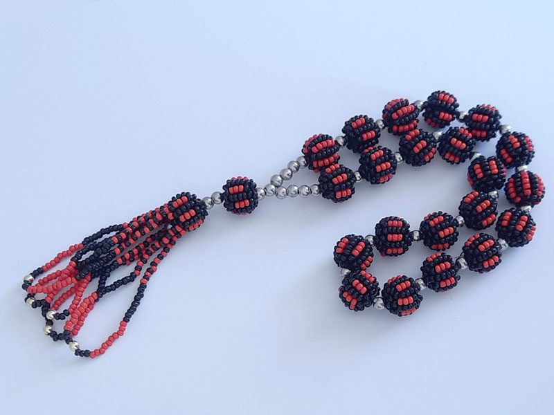 Bu özel tesbih, kırmızı tesbih renklerin zarif uyumunu ve cezaevi işi detaylarının özgünlüğünü bir araya getiriyor. Koleksiyoncular ve tesbih meraklıları için eşsiz bir parça olan bu tesbih, sadece bir aksesuar değil, aynı zamanda değerli bir sanat eseri.