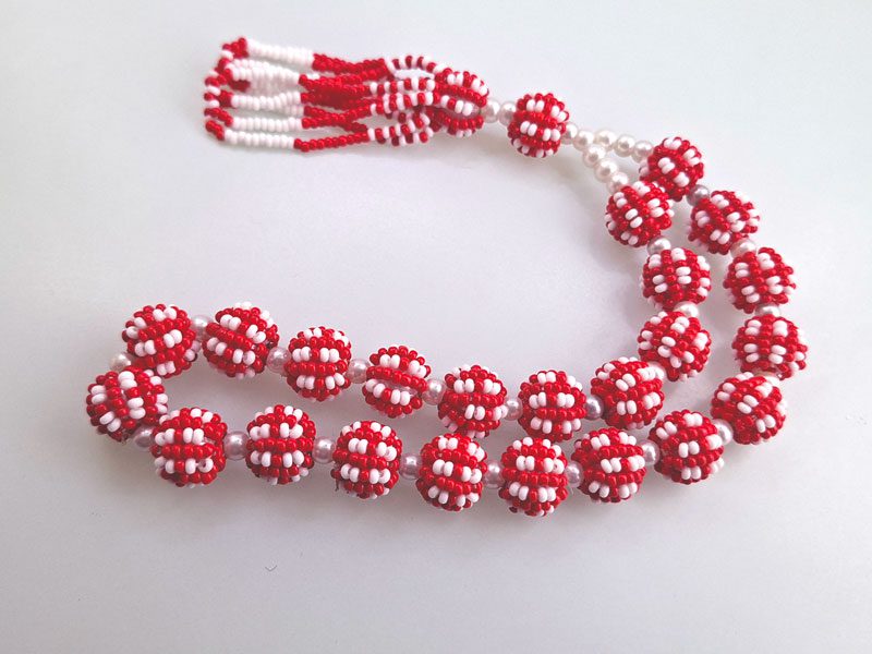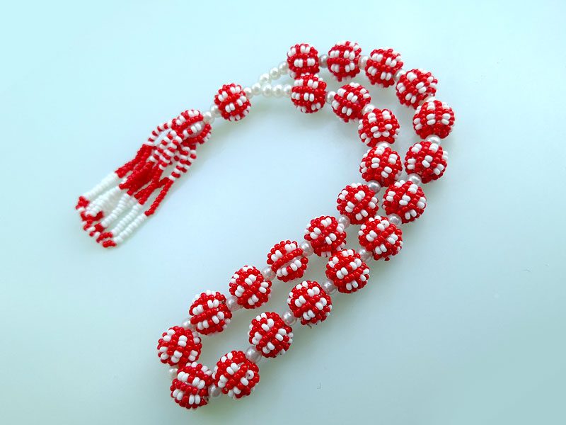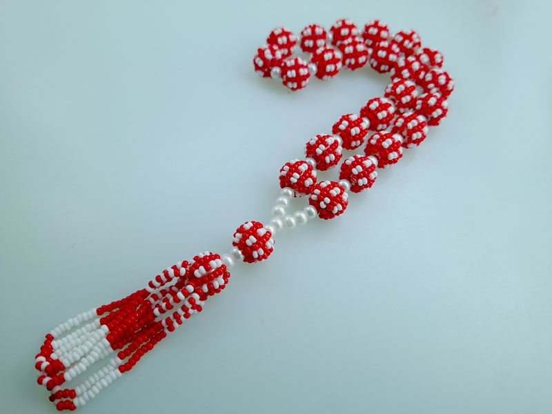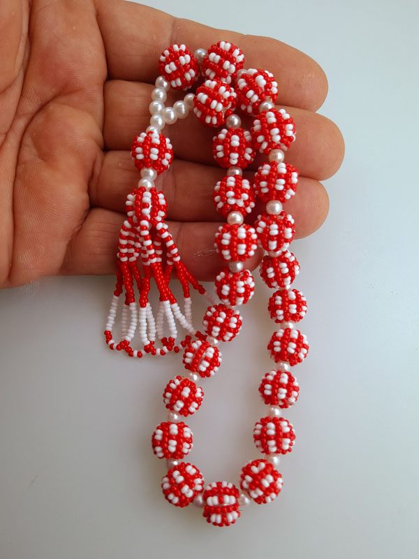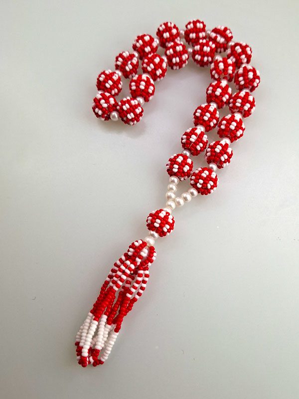 Kırmızı Beyaz İri Habbeli El Örmesi Koza Tesbih