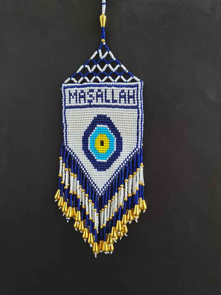 Yolların yorgunluğunu üzerinizden atacak, baktıkça huzur verecek bir detay arıyorsanız bu boncuk örme süs tam size göre. Mavi ve beyazın en güzel tonlarıyla işlenen bu model, her türlü araç içi döşemesiyle mükemmel uyum sağlar.
